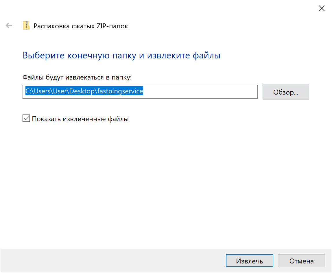 Скачайте клиентское приложение fastpingservice®, распакуйте архив с программой и переместите папку в любое удобное для вас место, например, в корневую папку системного диска или на Рабочий стол.