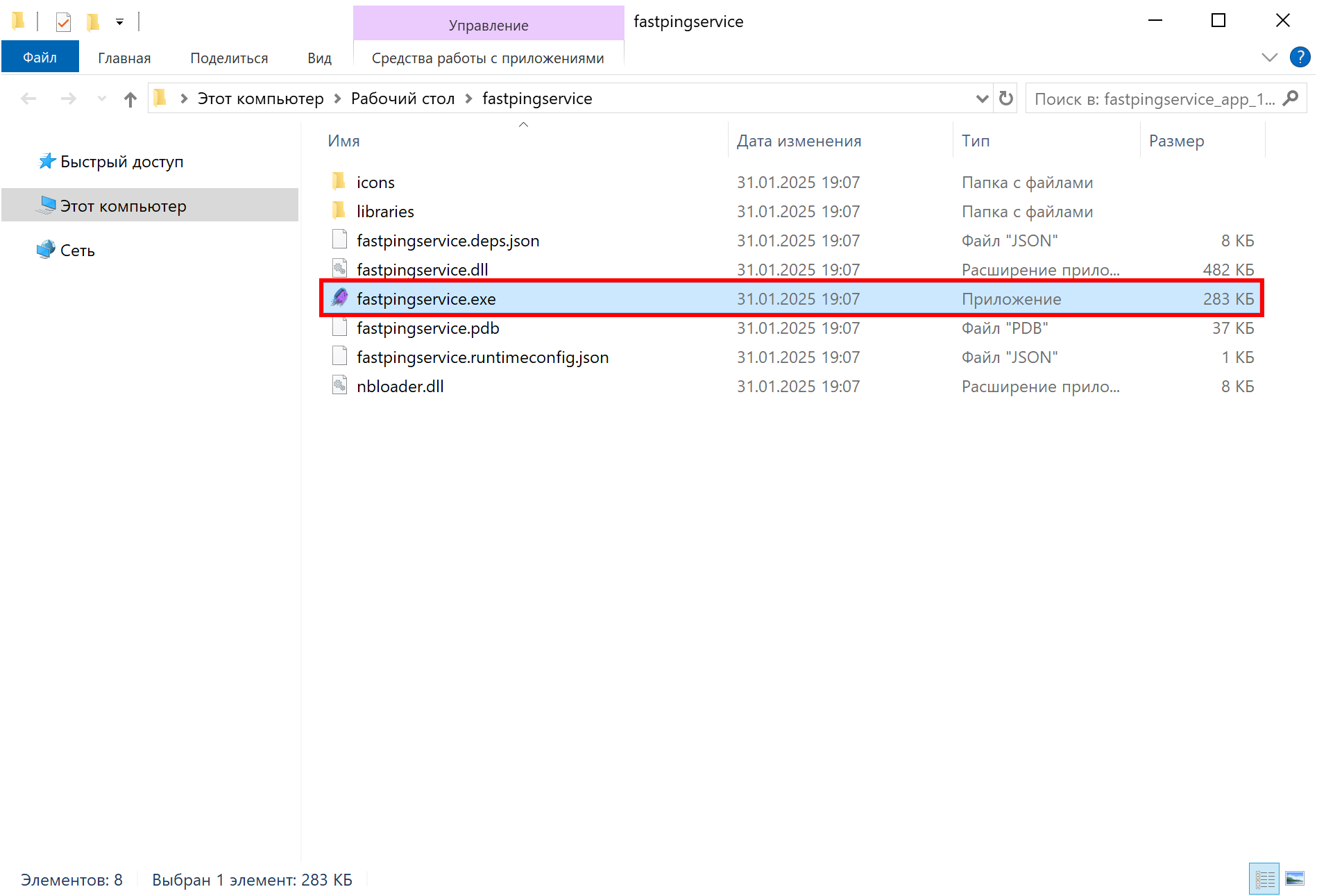 Обратите внимание, файл fastpingservice.exe не является установочным файлом. Клиентское приложение fastpingservice не требует установки, а исполняемый файл fastpingservice.exe готов к работе сразу после распаковки архива.