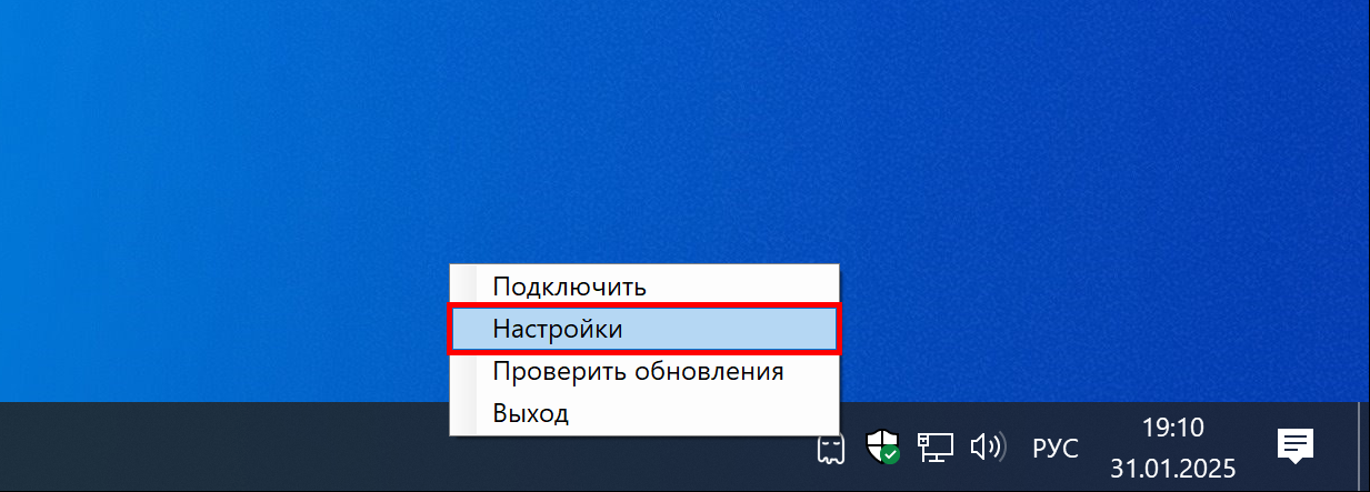 Нажмите правой кнопкой мыши по иконке в трее и выберите в контекстном меню пункт Настройки. Откроется окно настроек приложения.