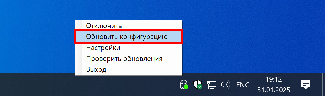 3. Если подключение при этом активно — обновите конфигурацию, выбрав в контекстном меню пункт Обновить конфигурацию.